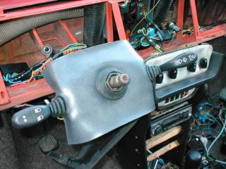![]() Celek je vhodné nějakým efektním způsobem zamaskovat. Já použil molitan a koženku k potažení, volantovou tyč jsem maskoval gumovou harmonikou už z nevím čeho. Maskováním se ihned zlepší vzhled...