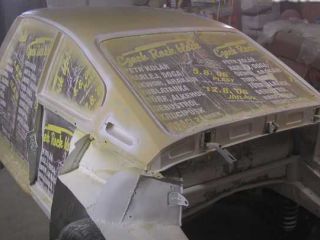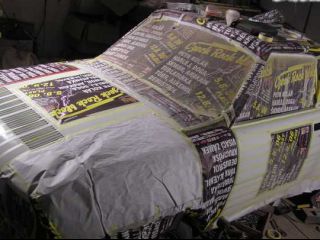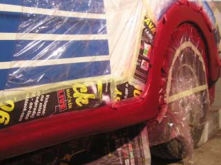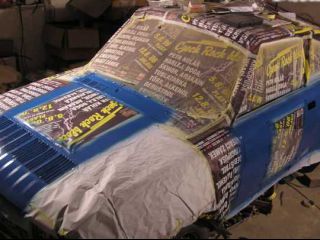 ![]() V případě stříkání celé karosérie si vylepte okna a jiné prostory, ať si zbytečně nenaděláte bordel tam, kde nechcete. K vylepení použijte klasické noviny, plakáty a podobně. K sobě a ke karosérii je lepte maskovací páskou - to je ta žlutá nebo bílá papírová samolepící páska. Koupíte ji v každém obchodě s barvy a laky.