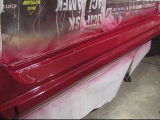 ![]() U malování MONTE CARLO jsem postupoval nejdříve stříkáním prahu a lemu předního i zadního čela, protože na něj pak přišly blatníky a částečně jej zakryly. Pak přišla na řadu modrá, která tvořila převážnou část malování. Pak byla světle červená, která se na lemech stala podkladem pro tmavě červenou. Obráceně by se to stříkalo obtížně.