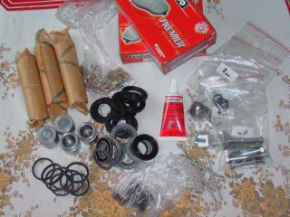 ![]() Do těla brzdiče vložte těsnící kroužek, na píst nasaďte těsnící manžetu. Píst i tělo pomažeme brzdovou kapalinou, do prachovky vytlačíme trochu příslušného konzervačního tuku a celek vtlačíme dovnitř. Jde to poměrně ztuha, ale tak to má být.