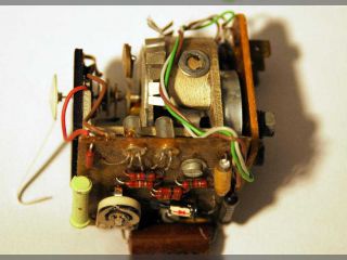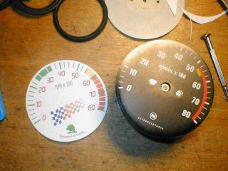 ![]() Novější otáčkoměr má ručičku pouze nasazenou. Vzhledem k počtu součástek bude zapojení nejspíš shodné.