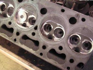 V kanálech ponechte nálitky na vodítka ventilů. Sice je pravda, že škrtí průtok, ale mnohem lepší bude, pokud je vhodně natvarujete, než aby do kanálu trčelo samotné vodítko. U výfukových kanálů navíc nálitek odebírá z vodítek teplo a zabraňuje přehřátí. Snažte se nálitky zabrousit do pozvolných přechodů a snažte se pomocí nich směrovat proud kam potřebujete. Kolem vodítek kanály více vydlabejte do stran. Vodítka zabrušte podobným stylem, pozor však na jejich vyústění, abyste neudělali tvar, který bude nabírat případné nečistoty dovnitř. Pokud stavíte čistě závodní motor, pak odstraňte nálitky úplně a u sacího kanálu zalícujte vodítko s kanálem a u výfuku vysoustružte speciální vodítko, které se bude zužovat. Prostor kolem vodítek zvětšete.