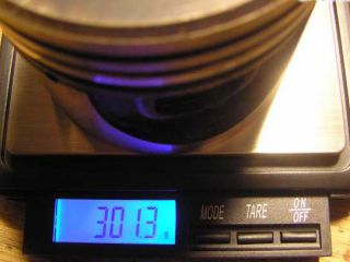 Píst lze odlehčit odbroušením materiálu z vnitřních stěn, zaoblit domky pístních čepů. Celý píst pak lze upravit po vzoru T-pístu. Největší tlak je během práce pístu vyvíjen na jeho boky. Při kompresi je to jeden bok a při expanzi druhý bok. Strana od pístních čepů se tedy může odstranit. Podle určení druhu motoru můžeme odstraňovat více či méně agresivně. V případě pístů na obrázku jsem použil odlehčení na 270g, ale pozor, že tyto písty byly abnormální a měly přes 2mm silné stěny. Zmenšení plochy pístu přinese menší ztráty vlivem tření. Pro orientaci fabrický T-píst ve vrtání 75.5 má váhu 250gramů. Další odlehčení pístní skupiny můžete provést zkrácením pístního čepu a případně i výměnou za čep z řady 100-120. Ten měl tenší stěny a tím asi o 20g nižší hmotnost. Zkrácením pístního čepu o 5mm lze ušetřit dalších dobrých 20gramů. Celkem z váhy pístní skupiny dostanete hravě 10% dolu.