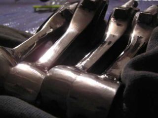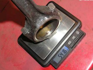 Všechny ojnice se takto zváží a jako referenční se vezme ta s nejlehčím okem či hlavou a ostatní se pak upravují na její hmotnost. Pokud chcete od motoru víc, můžete ušetřit mnohem více váhy tím, že nálitky odstraníte téměř úplně a pak jednotlivé ojnice dovážíte pokud možno na nulovou toleranci. Dále obrousíte boky ojnice a ve finále stopy po broušení zaleštíte, aby nedošlo v těchto místech k lomu. Již při broušení se snažte držet směr rýh shora dolů a ne napříč. Ušetříte si tak práci s leštěním.