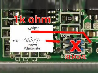 MOD #2 - YK31C shunt bypass If you cut the wire between R11 and shunt, and replace with 1k trimmer, you can fine tune the output power.