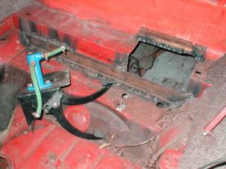 Úskalí práce : Zásah do karosérie, vyřezání staré konzoly a usazení nové Zapojení brzdové a spojkové trubičky - budou krátké