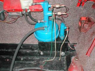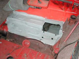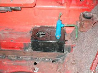 ![]() Nejprve musíte odpojit trubičky, vylít nádobku a vymontovat stávající písty i s pedály. Držák potom celý uřízněte. Dále si vyměřte polohu posilovače přičemž zkoušejte osazený posilovač, nebo pamatujte na to, že píst na posilovači může vadit krytu motorku stěračů. Snažte se díru vyříznout co nejvíce k podběhu. Následující foto napoví...